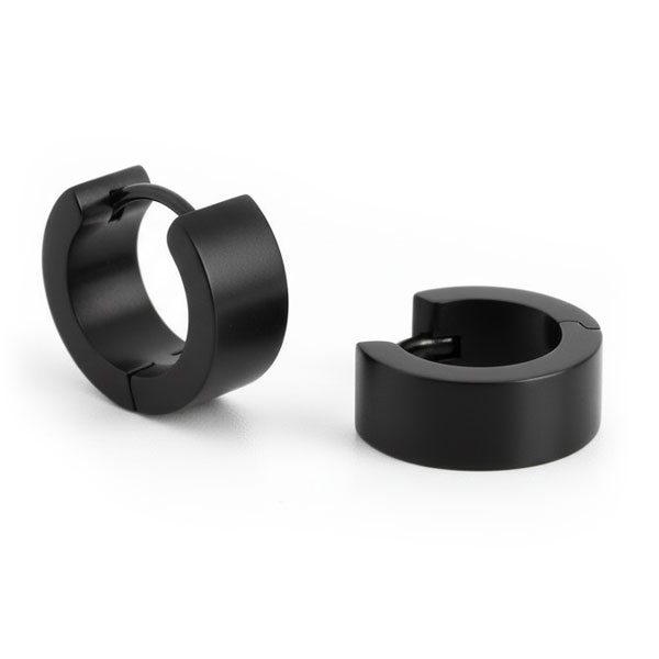Breite Männer Creolen Edelstahl schwarz mattiert 13 x 6 mm