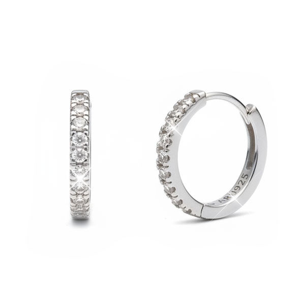 Damen Creolen mit 9 Zirkonia Strass Steinen 15 mm 925 Silber
