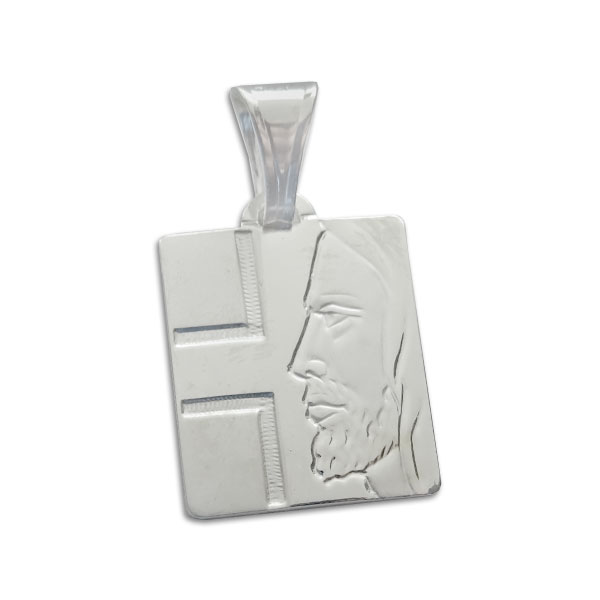 Anhänger in Form einer Platte mit Gravur von Jesus und einem angedeuteten Kreuz. Der Jesus Anhänger ist aus 925 Silber hergestellt. Seine Oberfläche ist teils matt und teils glänzend poliert, so dass ein toller 3D-Effekt entsteht.