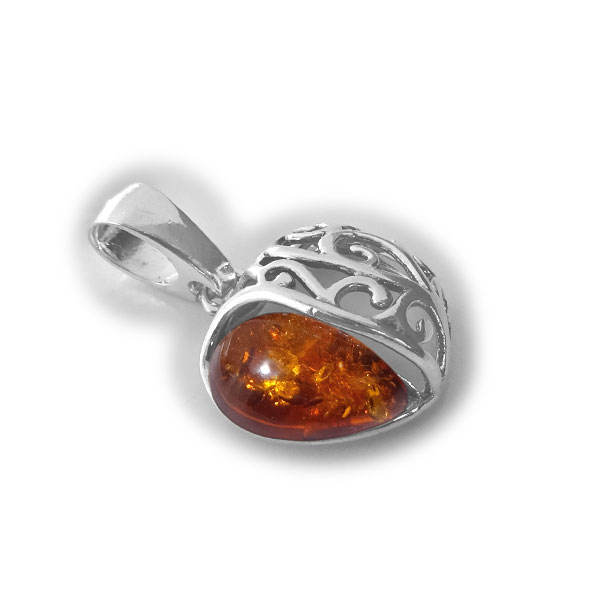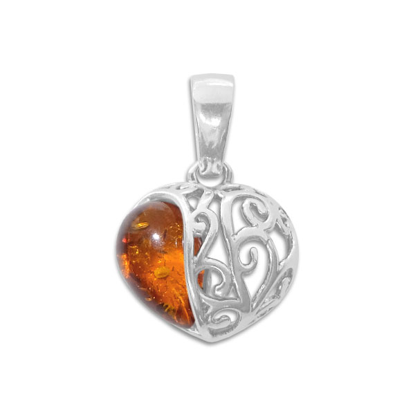 Bernstein Herz Anhänger mit floralen Ornamenten 925 Silber