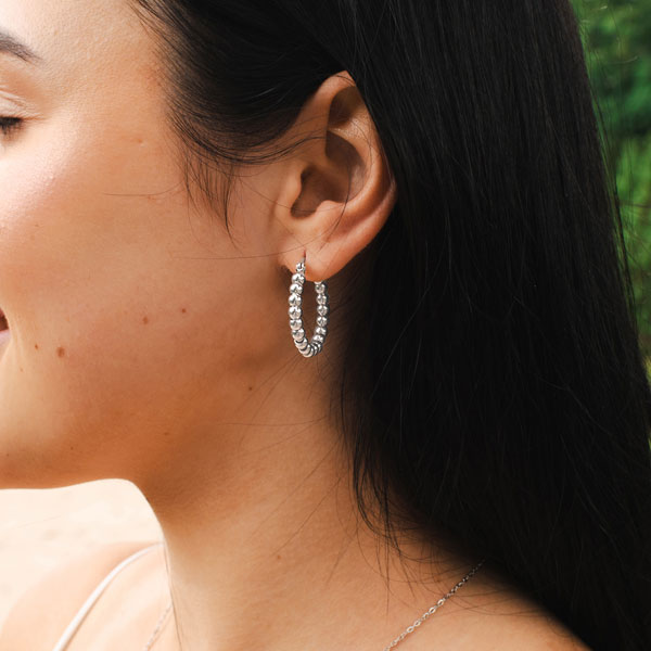 Die Kugel-Design Creolen haben einen Bügel- bzw. Hakenverschluss, der sich gut öffnen und sicher verschließen lässt. Mit ihrem Durchmesser von 26 mm sind die Kugel Creolen nicht zu groß, aber doch ein schöner Blickfang an den Ohren!