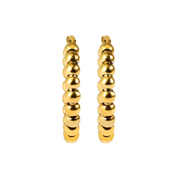 Bezaubernde Design Creolen aus Edelstahl besetzt mit 4 mm großen beweglichen Kugeln. Die goldfarbenen Damen Ohrringe mit Kugeln liegen sehr im Trend und zeichnen sich durch eine stabile Qualität aus. Sie sind recht schwer, da massiv verarbeitet. Eine Creole wiegt etwa 4,1 g.