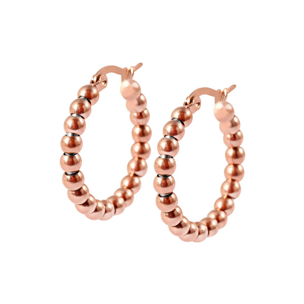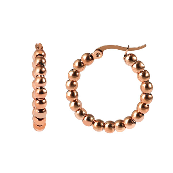 Edelstahl Creolen mit Kugeln 26 x 4 mm roségoldfarben