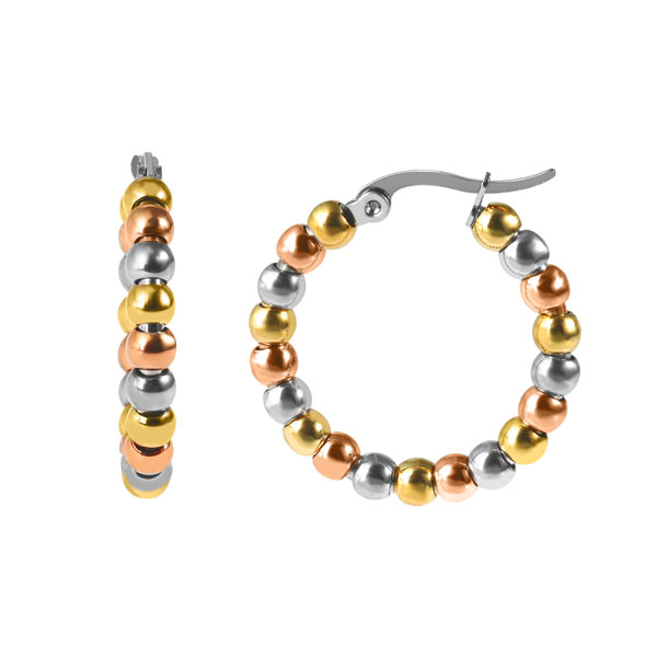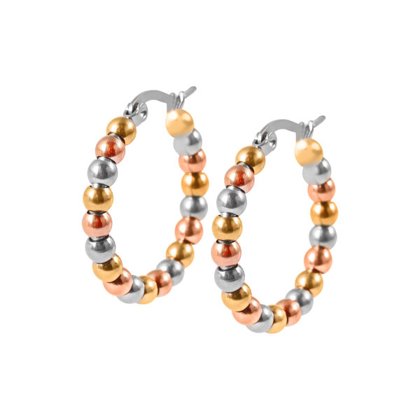 Edelstahl Creolen mit Kugeln 26 x 4 mm 3-farbig