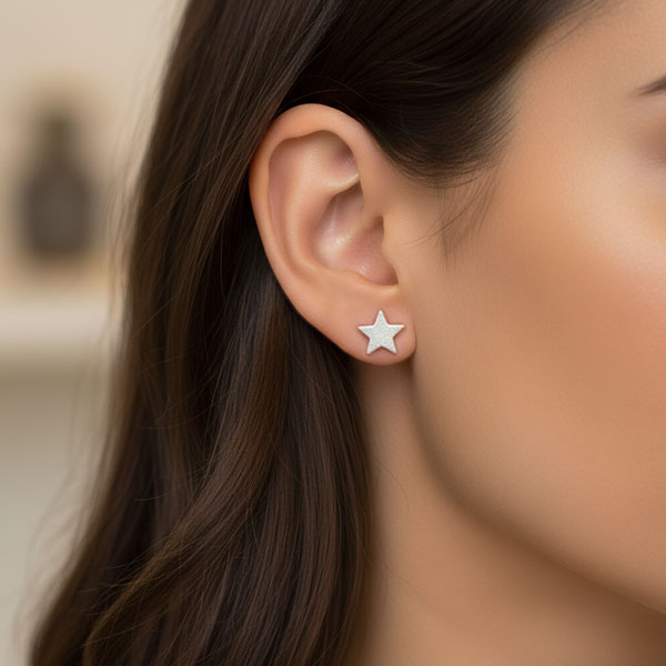 Schöne Ohrstecker mit größeren Sternen aus 925 Silber. Die Stern Ohrringe haben einen eismatten Auftrag und sind massiv verarbeitet.
