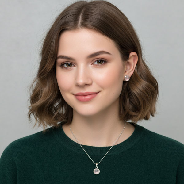 Die Oberfläche des Rosenquarzes ist glatt geschliffen mit einem so genannten Cabochon-Schliff. Wundervoller Edelsteinschmuck für Damen!