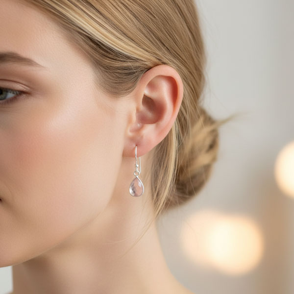 Die Rosenquarz Ohrhänger haben Ohrhaken zum Einhängen (so genannte Pendel-Ohrringe) und sehen einfach zauberhaft an den Ohren aus!