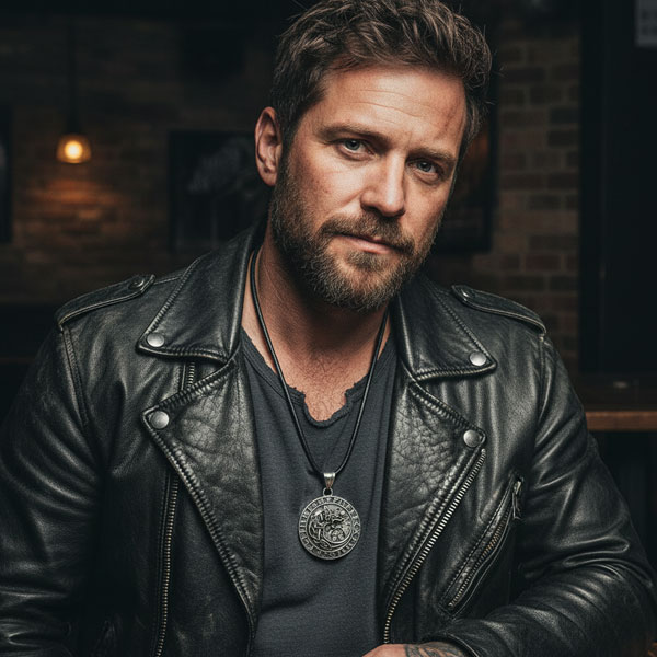 Großer und sehr edler Wolf Anhänger für Männer hergestellt aus massivem Edelstahl. Der Anhänger zeigt einen Fenriswolf aus der nordischen Mythologie in einem Kreis. Außerhalb des Kreises sind zahlreiche Runen platziert.