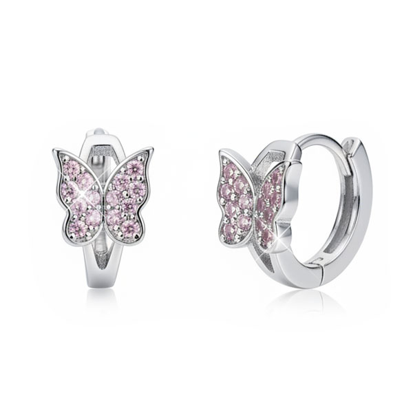 Klapp-Creolen Schmetterlinge mit rosa Strass Zirkonia 925 Silber