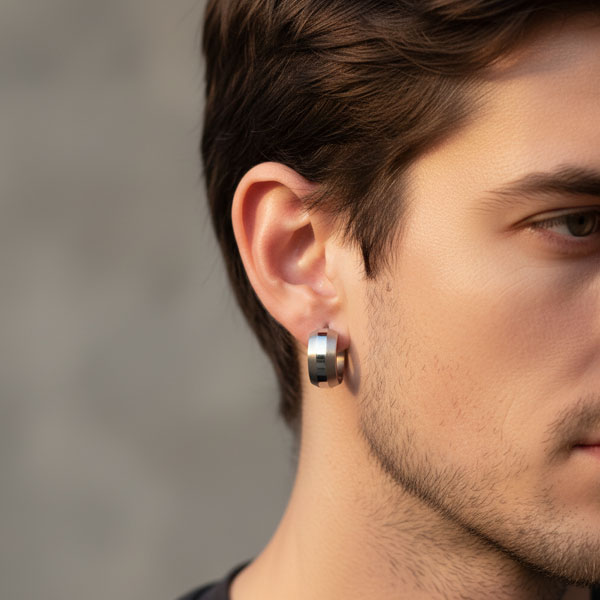 Single Creole für Herren Edelstahl teilmattiert (einzelner Ohrring)