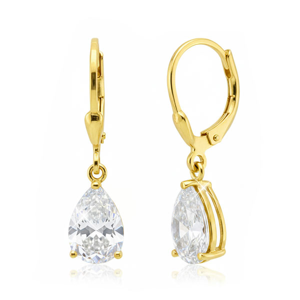 Schöne vergoldete Damen Ohrringe besetzt mit weißen Zirkonia Tränen. Sie sind aus 925 Silber hergestellt, welches fein vergoldet ist. Dadurch sind die Ohrringe eine preiswerte Alternative zu Goldschmuck.