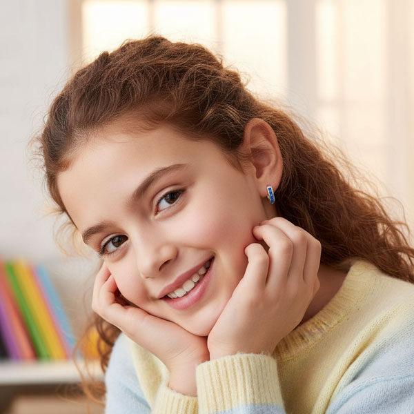 Traumhafte Mädchen Creolen besetzt mit je 5 blauen Zirkonia Steinen. Die Kinder Ohrringe sind aus glänzendem 925 Silber gefertigt und massiv verarbeitet. Sie haben ein Klapp-Scharnier, das sich gut öffnen und schließen lässt.