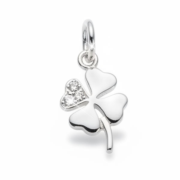 Glücksklee Anhänger Kleeblatt mit Zirkonia matt-glänzend 925 Silber