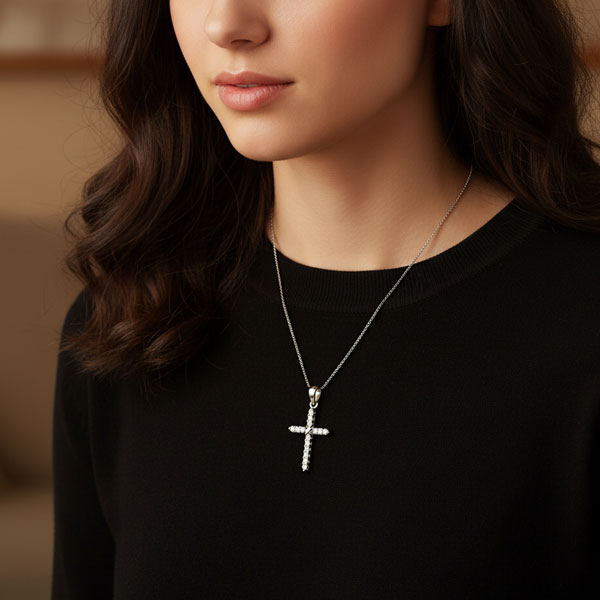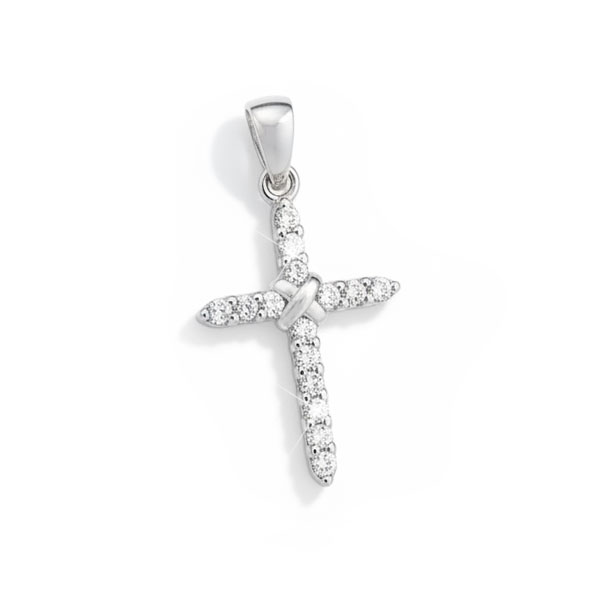 Zauberhaftes Damen Kreuz besetzt mit 15 Zirkonia Strass Steinen. Der Kreuz Anhänger ist aus glänzendem 925 Silber gefertigt und massiv verarbeitet. Er ist mit weißen Zirkonia Kristallen, welche facettiert geschliffen sind, besetzt. Der klaren Steine funkeln wunderschön.
