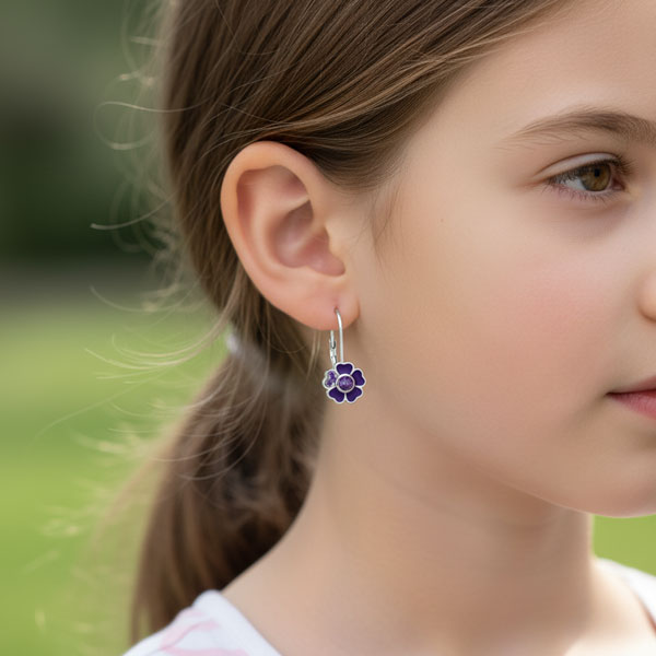 Lila Blumen Ohrringe für Mädchen mit Zirkonia Steinen 925 Silber