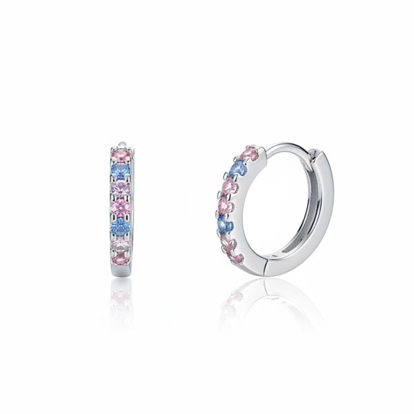Mini Creolen Regenbogen mit 6 bunten Zirkonia Steinen 925 Silber