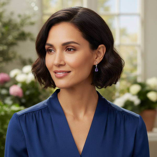 Wunderschöne Brisur mit Zirkonia Tränen in einem traumhaften lila Farbton. Die Damen Ohrringe sind aus 925 Silber hergestellt, welches rhodiniert (anlaufgeschützt) ist. Die beiden Zirkonia Kristalle in Form einer Träne bzw. eines Tropfens sind facettiert geschliffen und die Fassung ist auf der Rückseite offen. Durch die Lichtbrechung funkeln die Steine herrlich!