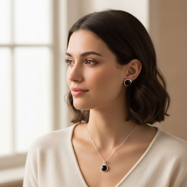 Große, runde Onyx Ohrstecker aus 925 Silber. Die leicht gewölbten schwarzen Edelsteine sind glatt geschliffen und glänzen schön. Die Onyx Ohrringe sind stolze 10 mm groß und damit ein echter Hingucker am Ohr!