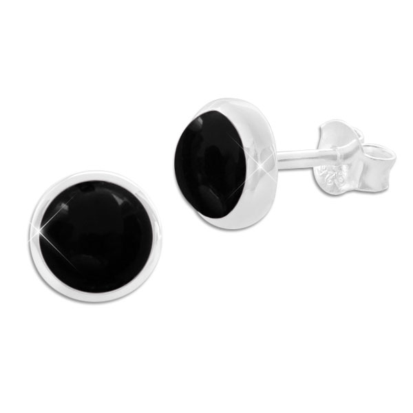 Onyx Ohrstecker 8 mm rund 925 Silber