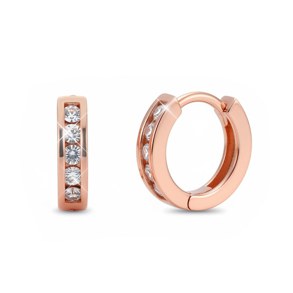 Rosévergoldete Creolen mit 5 weißen Zirkonia Steinen 925 Silber