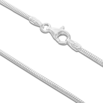 Schöne, etwas längere Schlangen-Kette hergestellt aus stabilem 925 Silber. Die 1,2 mm breite Silberkette in runder Form ist flexibel und anschmiegsam gearbeitet. Beim Schlangenmuster greifen die Kettenglieder gleichmäßig ineinander.