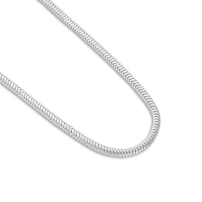 Eine längere und sehr schöne Schlangen-Kette aus stabilem 925 Silber. Die 1,2 mm breite Silberkette in runder Form ist flexibel und anschmiegsam gearbeitet. Beim Schlangenmuster greifen die Kettenglieder gleichmäßig ineinander.