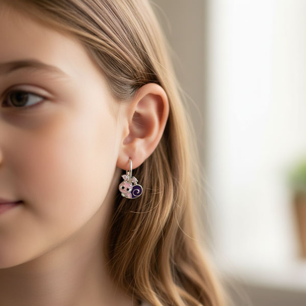 Schnecken Ohrringe für Mädchen rosa / lila & Strass Steine 925 Silber