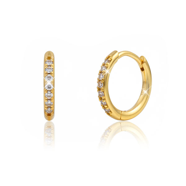 Vergoldete abgerundete Klapp-Creolen mit 8 Zirkonia Strass Steinen 925 Silber