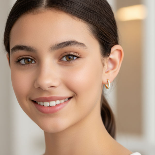 Die vergoldeten Creolen haben einen abgerundeten Querschnitt. Sie sind sehr leicht und angenehm zu tragen. Die Klapp-Creolen eignen sich mit ihrem Durchmesser von 13 mm für Damen und größere Mädchen.